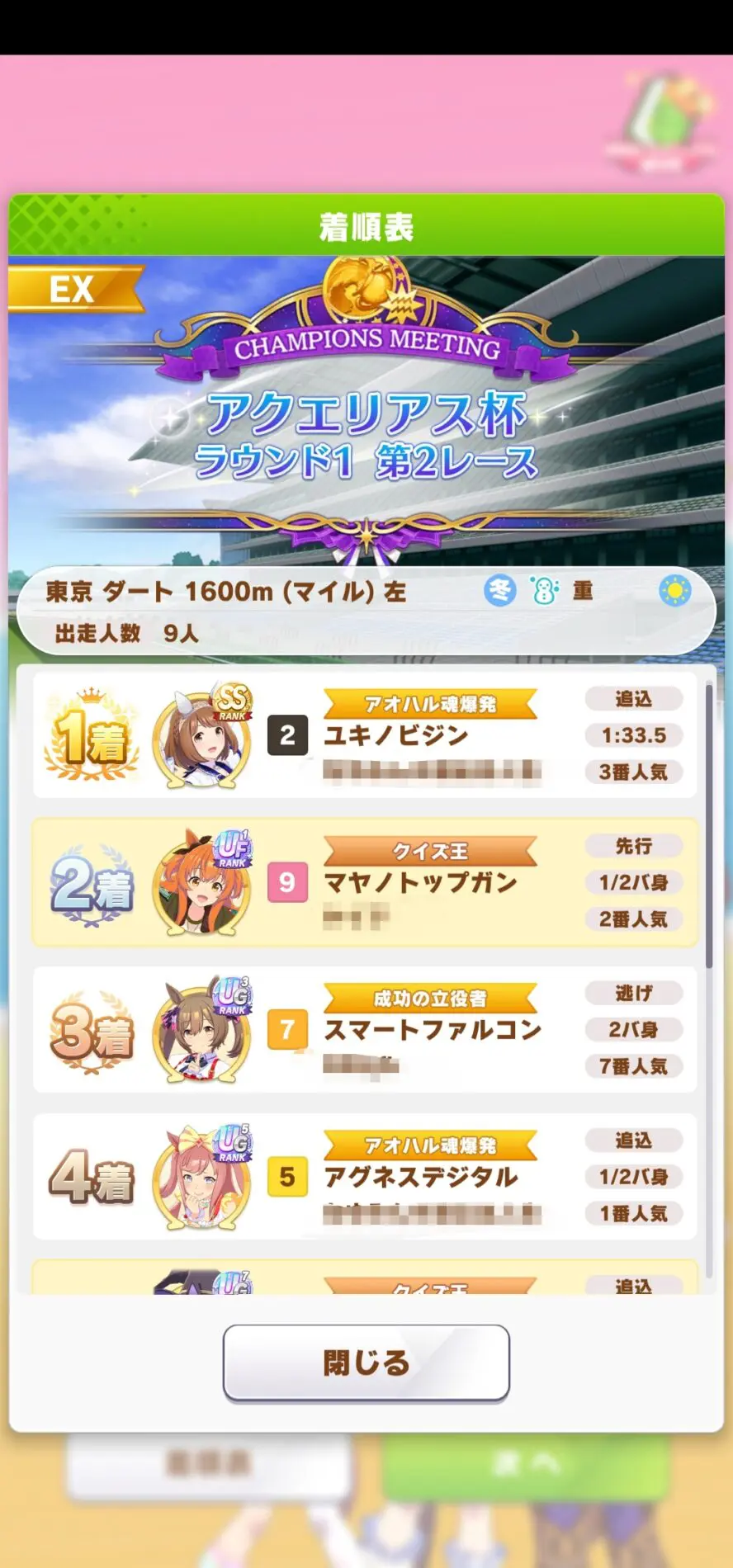【アクエリアス杯】大逃げ入れたらss+の正月ハルウララに最後方から差されたんだけどバグかよ。。。