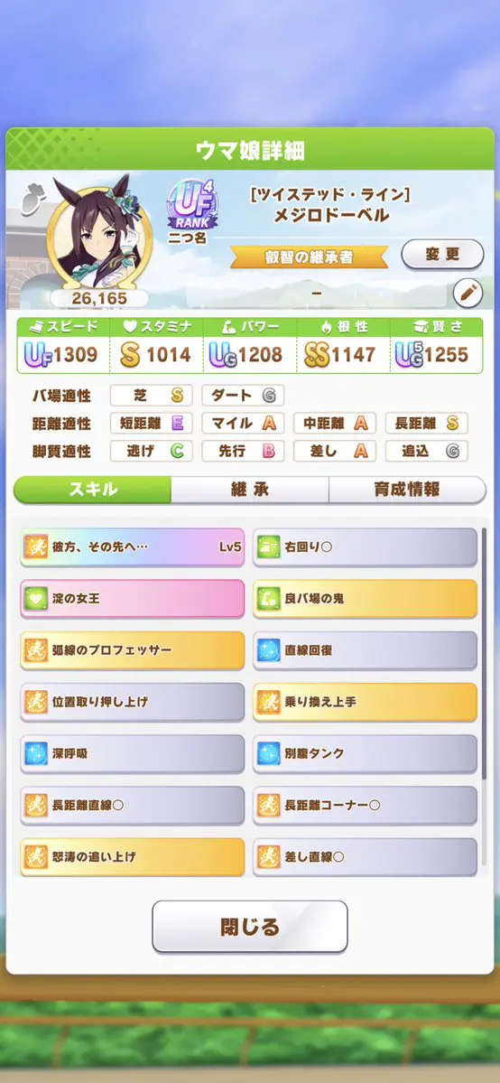 【画像】練習と叡智下振れてステ低くなったけどこれでスタミナ足りるかな???